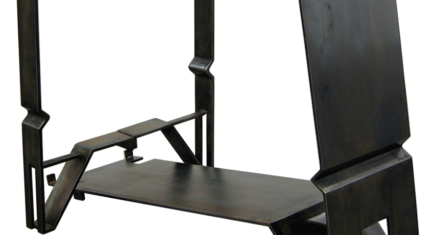 Der gezielte Einsatz von Stahl und Beton verdeutlicht den Charakter und die Eigenschaften der Materialien: die Stahlfüße /-klammern, die Zug- und Druckkräfte aufnehmen, stabilisieren und können elastisch sein; der Beton als statischer Körper und Halt, der Wärme speichert und sie langsam wieder abgibt. Beide kommen ohne einander nicht aus. Sie bilden ähnlich dem Stahlbeton in der Architektur eine harmonische Verbindung.